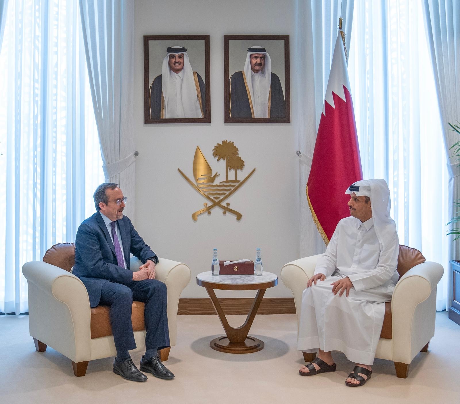 △卡塔尔首相兼社交大臣穆罕默德(图右)与安谧政事事务的好意思国代理副国务卿约翰·巴斯(图左)