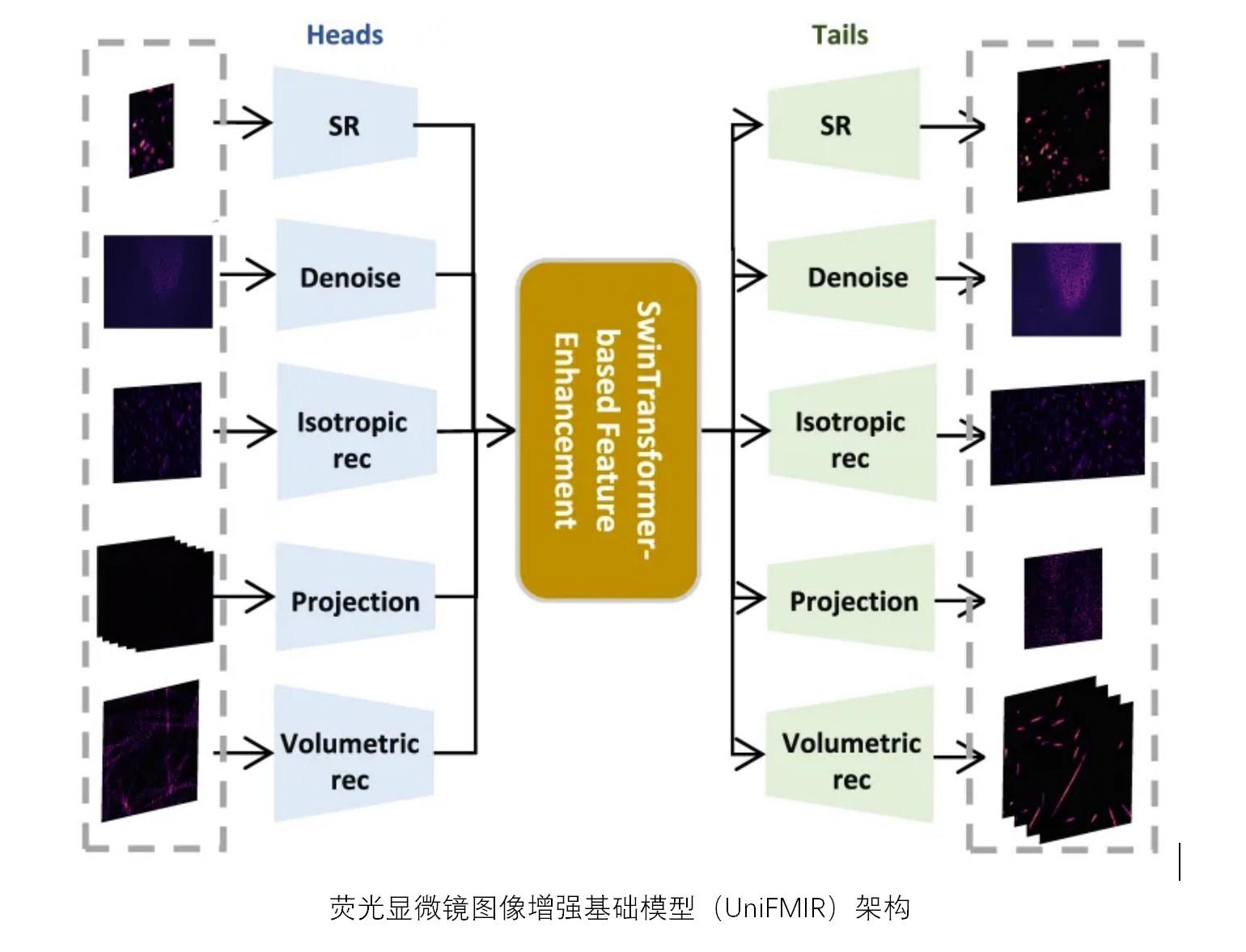 来自复旦大学的这支团队,以“一站式集成”为策画,平直构建了首个“调治”的荧显豁微镜图像增强AI基础模子(UniFMIR),大幅普及在“图像超永别率重构、各向同性重构、3D去噪、图像投影和经过重建”五大任务方朝上的性能。