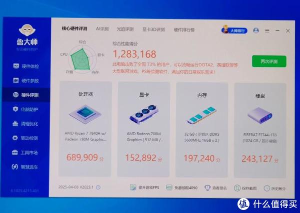 一、中枢肠能:低压科罚器的「逆袭」众颜U6 2023款主打 「静音分娩力」,搭载 AMD Ryzen 7 7840U 科罚器(8核16线程,Zen4架构,TDP 28W)与 Radeon 780M核显,同期配备了32g DDR5内存条(16gb*2)+1T固态硬盘,天然说定位为轻视创作本,然而这配置少许不输性能本。