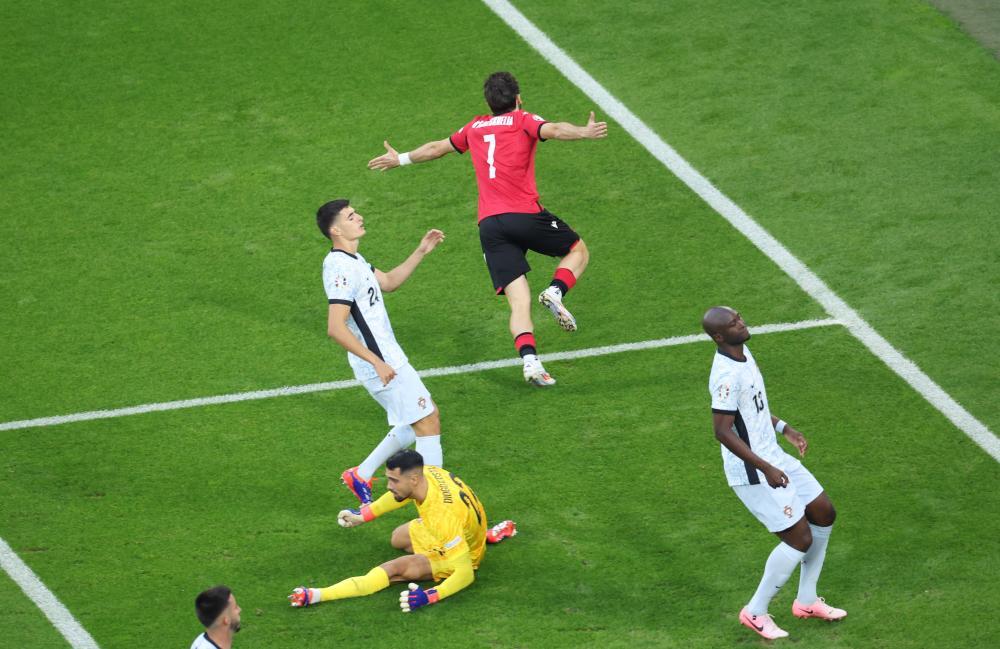 F组葡萄牙队两连胜提前锁定小组第一,终末一轮轮休大部分主力,而格鲁吉亚队则必须凯旋才智晋级。比赛运行仅两分钟,格鲁吉亚队取得闪电进球,安东尼奥·席尔瓦回传短处,格鲁吉亚得球发动快速反击,克瓦拉茨赫利亚突入禁区推射破门。