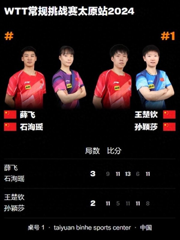 2024年WTT旧例挑战赛太原站混双1/4决赛,王楚钦/孙颖莎2比3不敌薛飞/石洵瑶,停步8强。这么一场失利,球迷们莫得念念到,因为莎头组合是天下第1,而敌手薛飞/石洵瑶根底莫得天下名次。但这即是国乒,队内太卷了,随处“扫地僧”。 王楚钦/......
